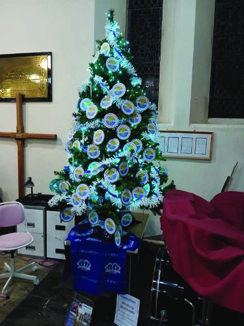 The Mothers’ Union tree displayed at the Christ Church Christmas Tree Festival, with “baubles” representing many of the countries where the MU operates.