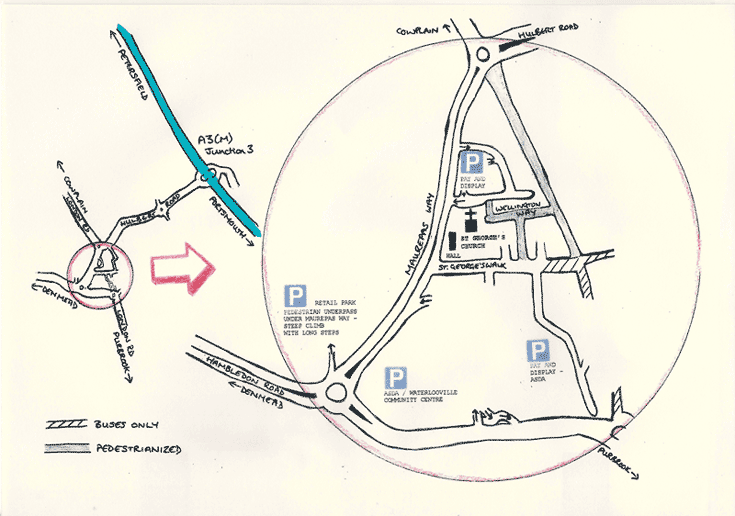 Map reference: SU 68131E 09428N. The address is: St George's Walk, Waterlooville, Hampshire, PO7 7EH. What 3 Words Code: ///acid.forget.skip