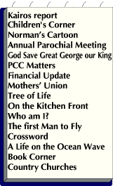 Annual Parochial Church Meeting |God Save Great George our King | PCC Matters | Financial Update |Mothers' Union |Tree of Life | Ruby's Memoirs |On the kitchen front | Who am I? | The first Man to fly | Crossword | A life on the Ocean Wave | Book Corner | Country Churches