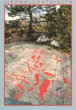 Midnight at North Cape Our reason for getting to this point was to see the midnight sun, as at this time of the year the sun never sets, it comes down to sea level then rises up again. My friends and I sat outside at midnight celebrating with a bottle or two, still wearing shorts and sleeveless tops as it was so warm. After two nights or should I say days it was time to move on leaving the island and start heading south down through Norway, a journey of almost 2000 miles. The first stop being Alta which is not far from the Russian border, it was devastated by the Germans scorched earth policy when they were retreating from the Russian advance in 1944. One of the main attractions there are the rock paintings and carving from the prehistoric period of about 10,000 years ago, they were not discovered until 1975 and are in excellent condition. There are four such sites in the area, we visited just one, had I been travelling on my own I would have stayed longer and visited all four as they were so interesting.