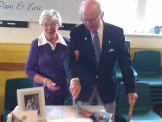 Pam & Eric Dinneen cutting the cake on the occasion of their Diamond Wedding Anniversary (October 20th)