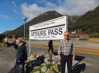 The next day we set off north to Christchurch (as previously described) and our date with the Tranzalpine Railway. We were picked up by taxi at an uncomfortably early hour to go to the station for a day trip across South Island to Greymouth via Arthur’s Pass. The weather was a little gloomy but had the promise of improvement as we chugged out of Christchurch and across the plain, heading towards the mountains and along the Wimakariri River. After a brief stop at Sheffield we continued over amazing bridges and through tunnels to Arthur’s Pass, 737m above sea level. Here the energetic disembarked to make the most of the walking opportunities and spectacular views in the National Park. The rest of us continued on past the parked up engines used to pull the heavy coal trains up from the west coast and through the Otira Tunnel. Built by a huge team of construction workers who lived in Otira village (now mainly a holiday home village) or camped at Arthur’s Pass, the tunnel is 5 miles long. It took 10 years for the two ends to meet, and another five years before the first train travelled through it in 1923. The descent to Greymouth was a little damp and grey and the lakes and rivers didn’t really have a chance to show themselves off.
