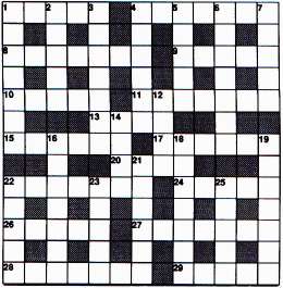 Across: 1.Mitre. 4.Prebend. 8.Reredos. 9.Rites.10.Chef. 11.Lob. 12.Smee. 15.Soul. 16.Mass. 18.Onus. 19.Axe. 20.Sect. 24.Koran. 25.De Facto. 26. Redeems. 27.Rills. Down: 1.1.Miracle worker. 2.Three. 3.Eddy. 4.Pastor. 5.Ezra. 6.Entombs. 7.Dispensations. 13.Sum. 14.Jab. 15.Spurred. 17.Exodus. 21.Excel. 22.Once. 23.Afar