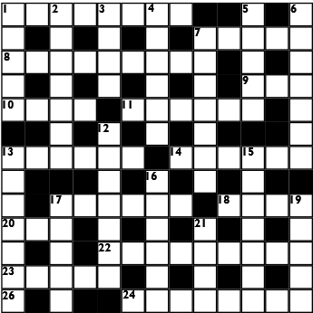Across: 1.Clown 4.Idyllic 8.Measure 9.Never 10.Eden 11.Alb 12.Urdu 15.Blot 16.Host 18.Acts 19.Lay 20.Tear 24.Ideas 25.Novenas 26.Nunnery 27.Alibi