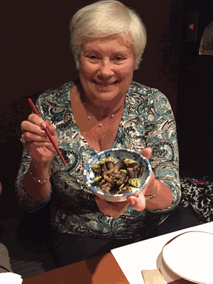 On the first Saturday we caught the ‘Bullet Train’ for a 90 minute ride north to Nagano for a 3 day visit. The area is famous for hot springs and also for skiing in winter. We have experienced such trains before, both in China and Taiwan, but were still amazed by the quietness and smoothness as we sped through the countryside at some 200mph. Our son hired a car for the weekend which gave us the opportunity to visit some of the interesting little towns surrounding the city which are largely geared for local, not foreign, tourism. It also gave us the opportunity to experience Japanese restaurants where English translations of the menu were certainly a rarity. There were often pictures of the dishes and it was certainly possible to guess what might be on the top of the bowl but more difficult to discern what might be underneath that layer. We also had the opportunity to taste Sushi (raw fish with rice) and Sashimi (just the raw fish) –delicious!! Seating in the restaurants was also interesting in that generally at least 50% was on cushions and mats around low tables. Certainly a no no for us. One overriding memory of the area was the quality of the fruit which was being harvested at that time. There were apples the size of small melons and unseeded grapes that were more like small plums, all of very high quality.