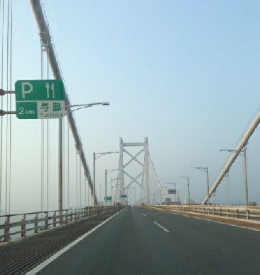 Shikoku is a much less heavily populated island than Honshu and as a result has a rather more relaxed atmosphere. While there we drove down to the south of the Island and spent a very pleasant few hours driving along the shores of the pacific. We then headed back to Honshu, this time crossing the Great Seto Bridge, a double decker construction with road on top and rail underneath. The bridge does in fact consist of 6 major bridges and 5 viaducts which connect small islands and in total stretches for a distance of 9.3km. Having reached Honshu again we then stayed in Kurashiki, a small town which was again much better geared to visits by foreign tourists.