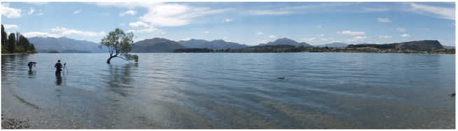 We settled into the camp site at Wanaka and attended to the laundry and a bottle of crisp, white wine from Wild Earth. Sunday dawned hot and sunny – perfect for the Kiwis who were enjoying a Bank Holiday style weekend for Waitangi Day. The lake front was lined with families enjoying picnics and there was a craft fair to wander. After coffee in town we drove out to the west of the lake to view Mount Aspiring and more Lord of the Rings sites. At the Treble Cone Ski area there was no snow but plenty of hang gliding to admire. Back through Wanaka we headed for Beacon point and decided to be brave and take a dip in the lake. It was surprisingly pleasant for a glacier fed lake so we felt very pleased with ourselves. Our final stop was back in Wanaka to see the iconic tree in the lake. Apparently everyone has to photograph it – something we achieved without the aid of wet suit or tripod, as some people seemed to need!