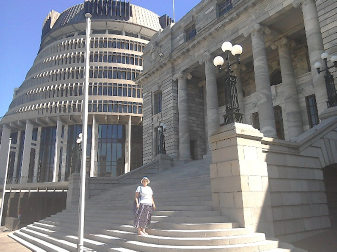 We continued our wanderings back to the bus station and admired the beautiful wooden Old Government buildings, which look as if they are built in stone, and the more modern Parliament Buildings (1922). Next door is the iconic “Beehive,” used as government offices. We took the opportunity to use the Kodak shop to download our South Island photographs onto a disc – in case of disaster with the camera. Back at the camp site we discovered that it was now nearly full, as was the attached Motel. There was a lot of early morning movement the next day as people heading south left for the ferry.