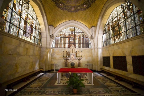 After lunch we went to Mt Zion, in Jerusalem, on foot, and first visited the Cenacle, the site of the Upper Room, in the remains of a fourth century Crusader Church. We continued to the Basilica of the Dormition, where it is believed that Mary ascended into heaven. On again to the Church of St Peter in Gallicantu, which is built over the site of the house of the High Priest, Caiaphas.