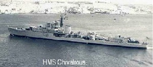 In 1945 Bert passed his chiefs exam and transferred to HMS Chivalrous in build at Dumbarton. Chivalrous was sent on the Palestine patrol, not a pleasant time for Bert or any UK serviceman as they were targets for the Jewish terrorists and many lost their lives, the hand grenade tossed into a crowded bar was a favoured attack. To deter action against the ship lights were rigged around the upper deck, this attracted sturgeons, which would be shot. Surprisingly all of the caviar ended up in the wardroom.
