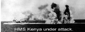 The next day war was declared and Bert’s pay went from a boy’s to a man’s i.e. 50 pence to £2 and 50 pence, he was a rich man. As an electrical Artificer Bert’s next posting was to stand by the Fiji class cruiser, HMS Kenya building at Alexander Stephens yard on the Clyde at Glasgow. Bert maintained the gyros and asdic equipment; his action station post being three decks down in the bow with of course locked hatches above him. Later when degaussing became necessary he had this equipment to maintain. He said it was at first copper bars taking 200 amps later multicore cables taking a few amps were fitted around the upper deck. After work up around Scapa the ship’s first task was convoy duty to Freetown in Sierra Leone. His run ashore there introduced him to topless young ladies with the younger shunning all garments. He says that he hurried back to the ship?