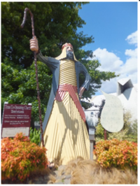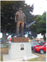 Our lunch stop was at Tokoroa, another wood and paper centre surrounded by forestry that was in various stages of growth and harvesting. The town is famed for its ”Talking Poles”. These are a range of wooden art installations with historical and modern themes. This statue recognises the work of the woodsmen. Our next port of call was Tirau, a small town famed for its corrugated iron structures. The tourist information centre (behind the figure) is housed in a “sheep dog” and the wool shop in a “sheep”. The church has a huge corrugated statue – his speech bubble declares “Being good will not get U 2 heaven. Believing in Jesus Christ will!” Shops have corrugated signs and the residents obviously have a great sense of humour. From here we headed to Matamata and the Opal Hot Springs camp site where we were able to relax in hot pools and swim in a full size, thermally heated, swimming pool. Bliss.
