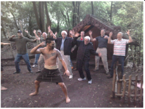 An afternoon of heavy rain put paid to thoughts of sitting in open hot pools and gave us concerns about our evening plans. Fortunately the weather cleared and we were waiting at the camp site entrance to be picked up by our bus driver (self-styled Dennis the Menace) who kept us entertained with jokes and songs on the trip to Tamaki Maori Village. Here our appointed leader (a very nice Canadian who originated from Glasgow) was chosen to accept the welcome token after the tribe had greeted us. We were introduced to Maori customs and traditions – the men being invited to learn a Haka and the ladies risking life and limb with the Poi dance (swinging balls on strings). After being entertained by the villagers with lovely singing and dancing we had a delicious hangi meal – meat and vegetables cooked on hot rocks in an earth oven. Dennis returned us to the camp site, encouraging us to sing songs from our various homelands and finishing with “The Wheels on the Bus” – surreal! His rugby, cricket and Aussie/Pommie jokes are unrepeatable.