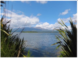 Taking State Highway 5, we continued southward to Taupo and found a pleasant camp site with ducks and rabbits for company at Acacia Bay, on the shore of Lake Taupo. To get there we had driven through an area called Vaucluse with roads named Carpentras, Luberon and Ventoux – rather appropriate as our summer holiday destination is the Vaucluse, not far from Carpentras and under Mont Ventoux in Provence! We enjoyed exploring Taupo, including a shop called the Man Cave, and discovered the Robert Harris coffee shop (last visited in Nelson) where we know there is good wifi. Colin replaced his worn out sandals with a pair of Croc jandles (flip flops in Kiwi). We returned to Robert Harris the following morning in order to enjoy their Eggs Benedict again. State Highway 1 took us along the lake side to Turangi through lovely scenery. Here we turned back to return north again, diverting a short way to the Tongariro National Park. On the banks of Lake Rotoaira we stood, surrounded by dragonflies on the site of an ancient Pa, and admired Mount Tongariro – aka Mount Doom and the Plains of Gorgoroth to Lord of the Rings fans.