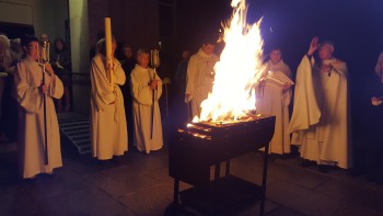 In Holy Week there were services each evening. On Maundy Thursday our service was in four parts, The Ministry of the Word, The Washing of the Feet, The Ministry of the Sacrament, and the Procession and the Vigil, which ended at midnight with Compline.