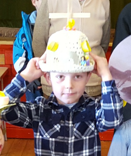 On the evening of Holy Saturday we held a service of the Empty Tomb, followed by the Lighting of the New Fire, no mean feat considering the windy conditions, but at least the rain had cleared for a while. We lit the new Paschal Candle, which this year has been donated in memory of Margaret Anderson who sadly died last year. To finish we adjourned to the hall for an Easter supper of jacket potatoes, various fillings and small chocolate cakes.