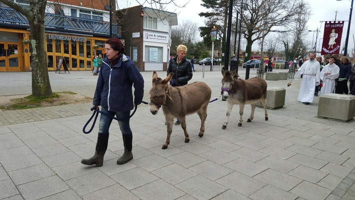 On Palm Sunday morning we gathered, together with two donkeys - Minnie and her foal Mabel (borrowed from Keydell’s Nurseries) and processed around Waterlooville Precinct, holding part of our service and handing out Palm Crosses to any passers by we met on the way, before rejoining the rest of the congregation in church.