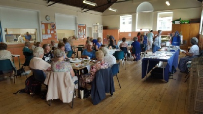 Guests began to arrive soon after 2pm. We put out the buffet onto two long tables at one end of the hall and made pots of tea in the kitchen.