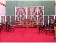 We were about to abandon plans to visit the Cathedral at 9am when a lovely gentleman rushed over to open up for us and showed us round. Like most of Napier, the traditional brick built Cathedral and all its art and decoration was destroyed by the quake which struck as communion was taking place. Edith Barry was pinned beneath a wooden beam and was unable to be rescued before fire swept through the building. A doctor gave her a merciful dose of morphine as nothing else could be done – how sad. A temporary wooden building served the diocese for the next 25 years (shades of Christchurch?) and a new Cathedral was finally consecrated in 1967. The altar was later moved forward to a central position and the sanctuary used to house the Maori Memorial Chapel. The art deco style of the new Cathedral is simple and effective so we hope that Christchurch will be able to combine the modern with long term style when new designs are drawn up.