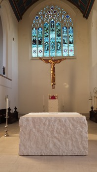 This was on Thursday 1st December. Margaret and I parked in a nearby side street and walked the short distance to Holy Spirit Church, Southsea. I had not been here before so took a little time to look around. The white walls stretch very high to a beautiful ceiling in square patterns. There is a very striking Christ figure - suspended, arms outstretched. The back area of the church has been made into ‘two-storey’ with a balcony section.