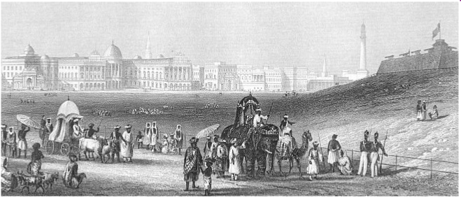 We made a fair passage after leaving Galle. Our American friends were very ill – the ladies did not make their appearance until the last day. The gentleman (Mr Eyoob) and myself became quite intimate. He has lived in Calcutta about 20 years and told me much about Indian life. We reached the Sandheads (the entrance to the Hoogly) early on the morning of Tuesday the 8th February. A master pilot came aboard about 7.30. These master pilots are quite gentlemen – the appointment is worth about £1000 a year. He brought an assistant (called the leadsman) and a Lascar (a sailor from India or SE Asia) servant with him. The navigation of the Hoogly is exceedingly difficult, & in some places dangerous – in consequence of shifting banks of sands. A man cannot become a master pilot until he has served 7 years as a leadsman. I was much pleased with the scenery up the river. It is as pretty as it can be in such a flat country. The width of the stream varies considerably, in some places it is as much as 3 or 4 miles – at Calcutta it does not much exceed a ¼ of a mile. Owing to the sand banks, large vessels are obliged to steer a very winding course – sometimes we were not more than 100yards from the bank. We reached Calcutta about 7 o’clock. It was quite dark so I saw nothing of the place that night. On our passage up we met a large number of vessels towed by steam tugs. Shortly after we arrived at Garden Reach (the P&O compy’s premises), a gentleman came on board enquiring of me. This proved to be Mr Walmsley, Mr Mackintosh’s cousin, who is a partner in the firm. He had a carriage (called a palik-garu) waiting, so I immediately left with him and drove into Calcutta, a distance of about 3 miles, leaving my luggage to be fetched the following day. I was introduced to Mr Jas. Mackintosh & a Mr. Burkinyoung, who is at present an assistant, but who will shortly leave. They are all quite young men, neither of them as much as 30 years of age, & all live together. There is also a brother of Mr M’s about 18 years of age who I believe is to be sent to England shortly. The head clerk, Mr Simmonds, is a married man & lives close by – he is about 50 & has lived in India many years. You will be glad to hear that the business is really an extensive one & that from all I can see & hear, they are wealthy people. A brother of Mr Walmsley is superintending some large contracts a few miles up country. These are all Europeans, but there are 15 or 20 native clerks & draughtsmen. In the timber yard we have at present upwards of 200 carpenters and joiners, & 100 sawyers, & there are some hundreds of bricklayers, plasterers etc employed at different buildings.
