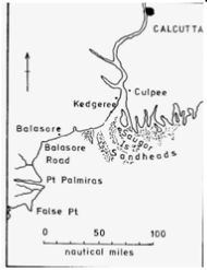 Our long voyage is now approaching its termination. We shall remain here a few hours only to take in a little coal etc. and hope to reach Calcutta in 7 or 8 days. I have kept to my plan of copying my diary as I write it. I fear you will find it not very interesting but there is little to write about except when in port. I have been well and hearty during the whole voyage. During the last few days I have been troubled slightly with what sailors call “prickly heat”. It is merely an eruption on the skin caused by the hot weather – it is a sign of good health – those afflicted with it generally bear the hot climate well. So there is comfort even at this. I have not time to write much more. I thought we should remain at least a day or two & was much surprised on hearing that we shall be clear of the bay before dark. I must therefore take the first opportunity of going ashore to post this. I don’t know exactly about the mails to England so I suppose you will receive a letter from me from Calcutta about a fortnight after you receive this. But you must not be surprised if it is longer – you are never certain about time while at sea.