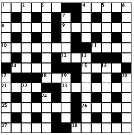 1.Abler. 2.Syria. 3.Shingle. 4.Aged. 6.Meeker. 8.Solomon. 9.Smashed. 10.Aneroid. 13.Friars. 14.Tapered. 17.Mensa. 18.Cushy. 19.Star.
