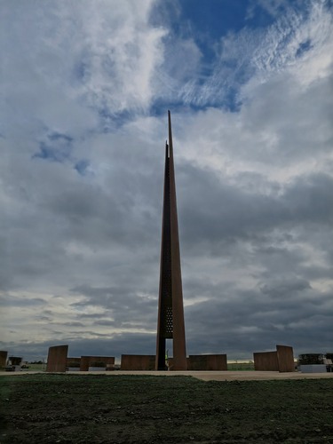 This impressive 102 foot high spire stands on Cornwick Hill facing the cathedral. Its height corresponds to the wingspan of a Lancaster Bomber. Steel walls alongside are engraved with the names of all 55,573 men killed serving in Bomber Command. Designed by Stephen Palmer it was unveiled on 20 September 2015 by Lord Howe, Minister of State for Defence.