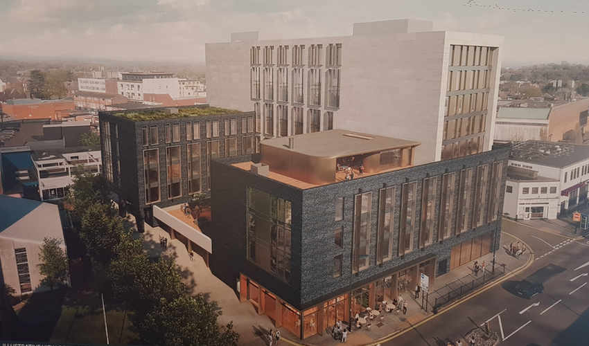 A public meeting took place on 30 May to present the revised plans for redevelopment in the town centre, consisting of 264 private rented apartments over 9 floors. The new scheme has moved the 9 storey block further away from the church, and to address the parking issue the scheme now incorporates a multi-storey car park on the site of the existing “Iceland” car park.