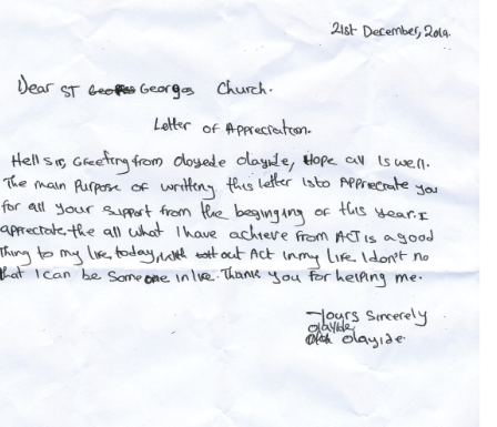 Many of our original donors have either died or moved away but they have been replaced by some generous newcomers who make an annual donation. We do get regular updates about our sponsored children and occasionally a letter from them thanking us. A recent one from one of our children appears below.