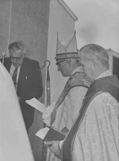 Friday 3 April 1970 was a memorable date in the history of St George’s when the Bishop of Portsmouth (Rt Revd John Phillips) came to consecrate the new church. For almost 18 months – since December 28 1968 – all services had been held in the Church Hall, whilst an old Army hut had been purchased and placed on the grass behind the Hall to be used for meetings and Sunday School.