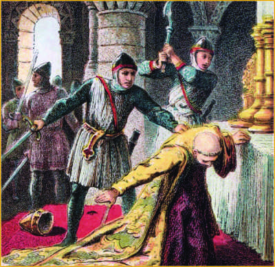 In June 1170, at the kings behest, the Archbishop of York (a long time adversary of Thomas) along with the Bishop of London and the Bishop of Salisbury, crowned the heir apparent, Henry the Young King, at York. This was a clear breach of Canterbury’s privilege. One of Thomas’s final acts was to excommunicate all three bishops. It was at this point that Henry II is alleged to have uttered the words: ‘Who will rid me of this turbulent priest’. Whether he did say these words or something similar is disputed, but what is beyond doubt is that four knights travelled to Canterbury in pursuit of Thomas.