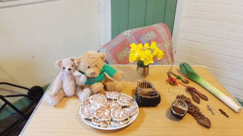 As it was St David’s Day the theme for our meeting was Wales. We heard details of the life of St David, Wales’ Patron Saint, and members had brought items including small models of coracles, love spoons, daffodils, a Welsh blanket, two dogs made of Welsh coal, two Welsh Teddy Bears and a leek!