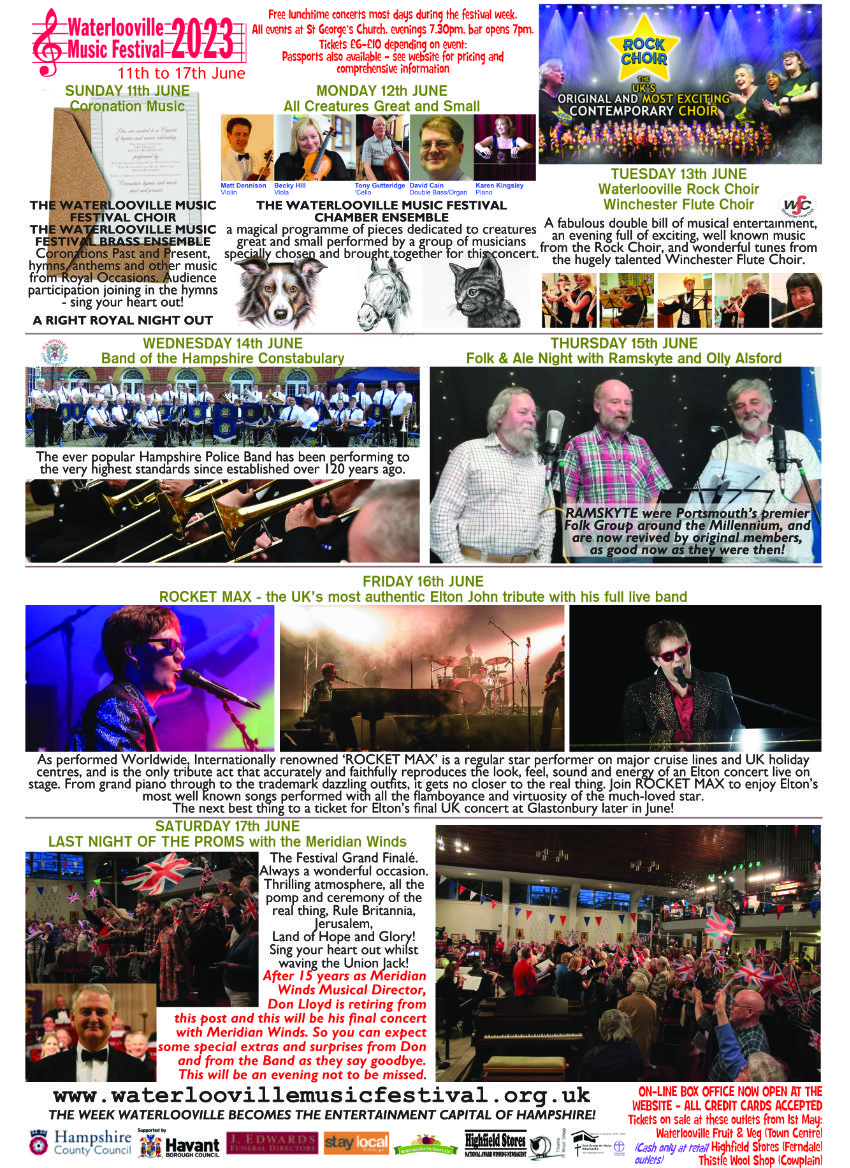 People often complain that Waterlooville has little entertainment going on – so here is the opportunity to enjoy a week when that is not the case and support this community run event, organised and staged entirely by volunteers.