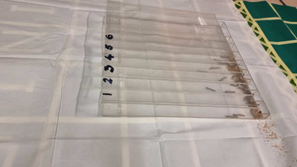 The maggots, actually meal worms and larger than expected, seemed surprisingly quite happy to move obligingly along their track as long as everyone took care to stand behind them so they didn’t get distracted!