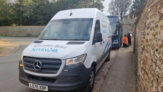 And then a quick “loo visit” onto the coach and set off for home. Or so we thought – however Nick discovered the coach’s battery was flat so we had to wait for the breakdown man who spent ages struggling to get the battery casing off, finally levering it off with a large screwdriver. With jump leads he got the coach started but then was a problem with the door.