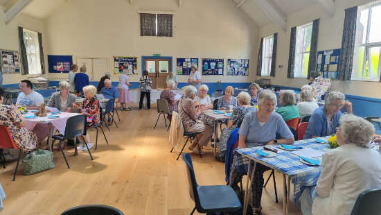 Members had provided plates of various sandwiches and savouries, cakes and biscuits which we laid out “buffet style” and we brought round a trolley to each table serving teas and coffees.