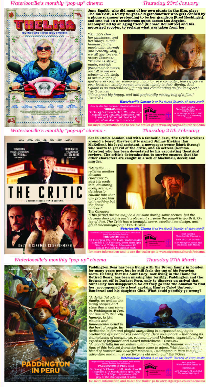 About St George’s Church | all about us & Contacts list | Notices and Facebook | Sunday Bulletin, PCC & ACPM ReportsRegisters, Baptisms, Weddings | Feedback, Donations | Mailing list | Church Hall Organisations| Waterlooville CinemaSt George’s News (latest & past magazines) | Advertisers | Waterlooville Music Festival 2025 | Safeguarding | Church Shop