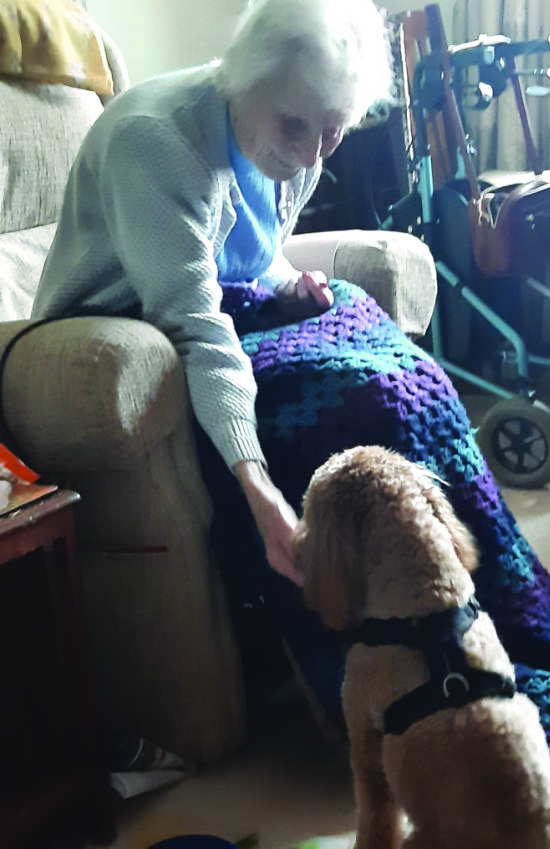 Our Anna Chaplain, Marian Haughton recently visited Eileen Oades to take her communion. Pictured here is Eileen saying hello to Barney.