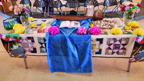 Interspersed in our service of hymns, songs, prayers and scripture readings were stories of the Islanders struggles during COVID-19, their culture being devalued and improvements in obstetirc health care.