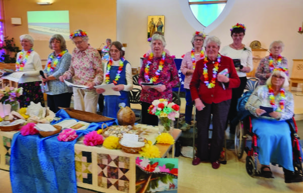 This year’s World Day of Prayer service was held at the Sacred Heart Church on Friday 7th March. To set the scene there was ocean music, we wore flower garlands and all present were given a flower to wear.