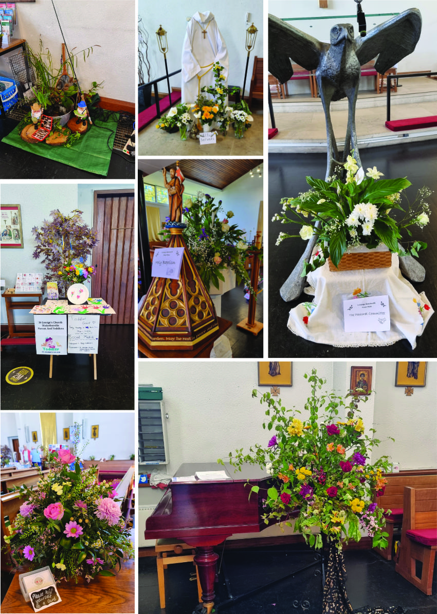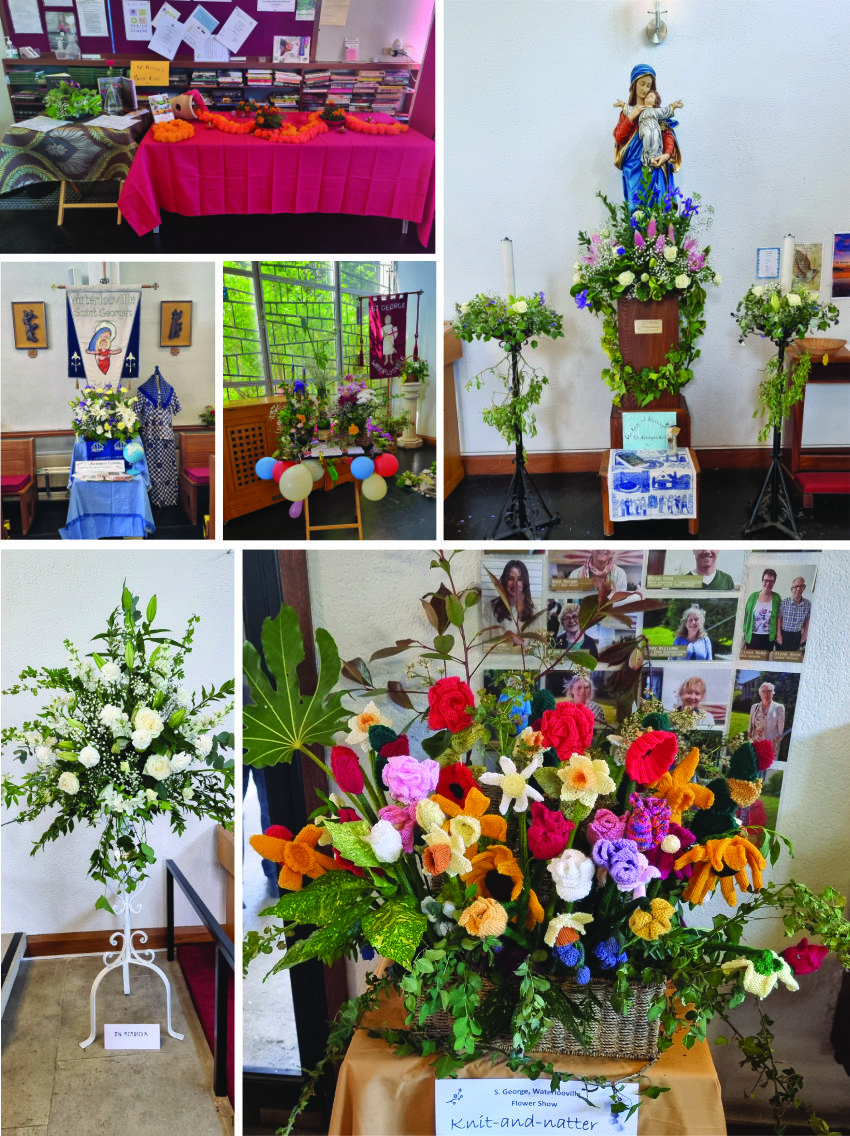Bill Wycherley Hall kitchen roof Alfreda serving Charity Collections Mothers Union notes Walsingham 2025 Waterlooville Music Festival St George's Baghdad Flower Show 2025 Dragons Dedication of notice board Flower Pedistal Crossword The Quizmaster Puzzle time Waterooville Car Show Waterooville Food Bank Book Corner Who am I?