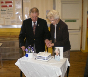 On Sunday 11th September Peter and Eileen Oades celebrated their 65th Wedding Anniversary and are shown here cutting the anniversary cake, with their card from HM The Queen alongside.