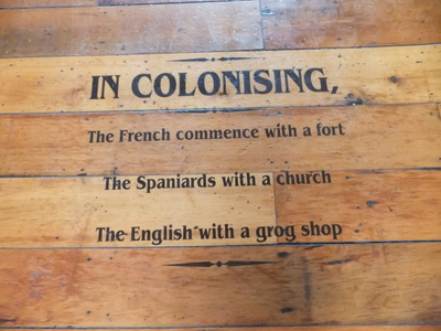 The wooden floorboards of the Speight's Ale House in Greymouth, South Island, are adorned with quotes to make you smile. Here are just two of them. The Ale House is in a former government building near the railway station at the western end of the Tranzalpine Railway. It is an impressive stone building and has been decorated with beer and brewing paraphernalia. George's Men would love it! As well as serving Speight's beer from Dunedin in competition with the Greymouth based Monteith's, they serve the famous whitebait patties. We enjoyed them so much we ate there twice!