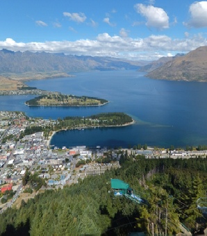We booked into a camp site in Arrowtown and then drove into Queenstown through the Shotover valley where they jet boat and bunjee jump. Queenstown was glorious in sunshine but very busy - lots of agents for all the activities and Lord of the Rings trips.  We went up to the Skyline Centre in the gondolas and enjoyed the views from above - even bungee jumping into a gap cleared in the forest (even more mad!). We returned to Arrowtown and strolled through the main street which is very old time Gold Rush style. It even has a preserved Chinese settlement from the days when the Chinese came to make their fortune in the gold field so they could return to China and buy a farm and be self sufficient.
